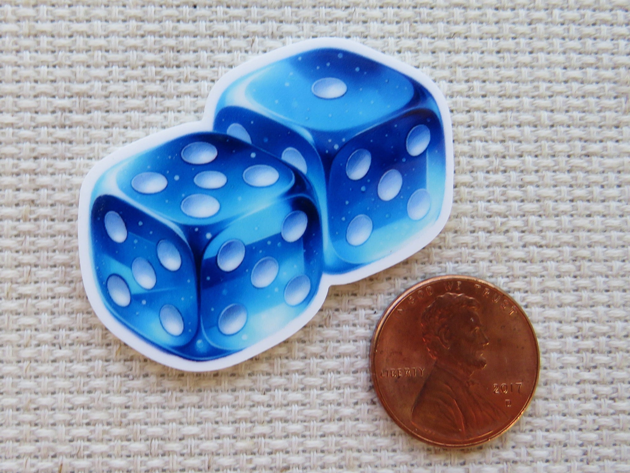 A Pair of Blue Dice Needle Minder, Cover Minder, Magnet