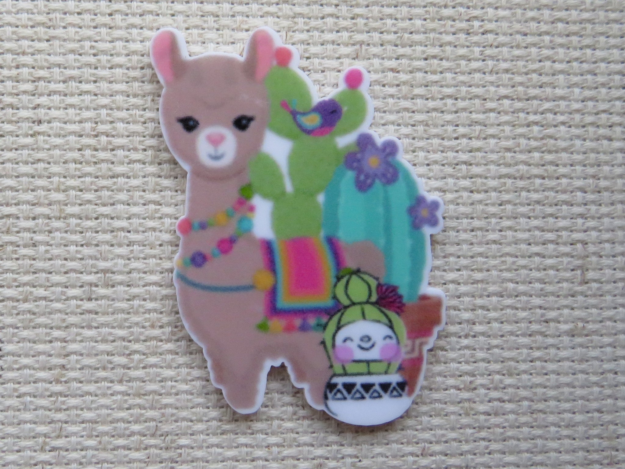 Brown Llama with A Snowman Needle Minder, Cover Minder, Magnet