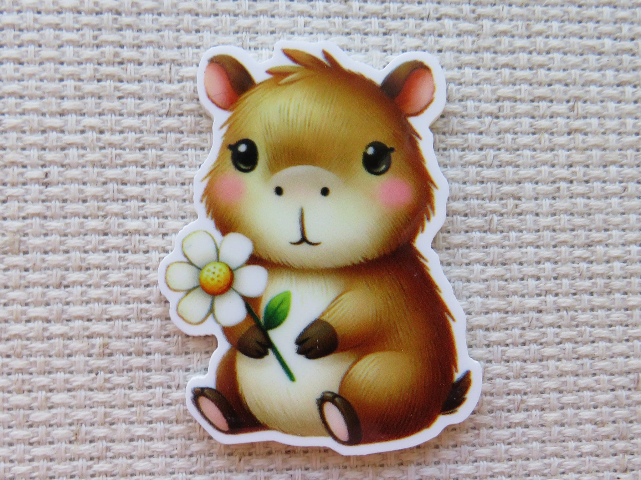 Capybara Holding a White Flower Needle Minder, Cover Minder, Magnet