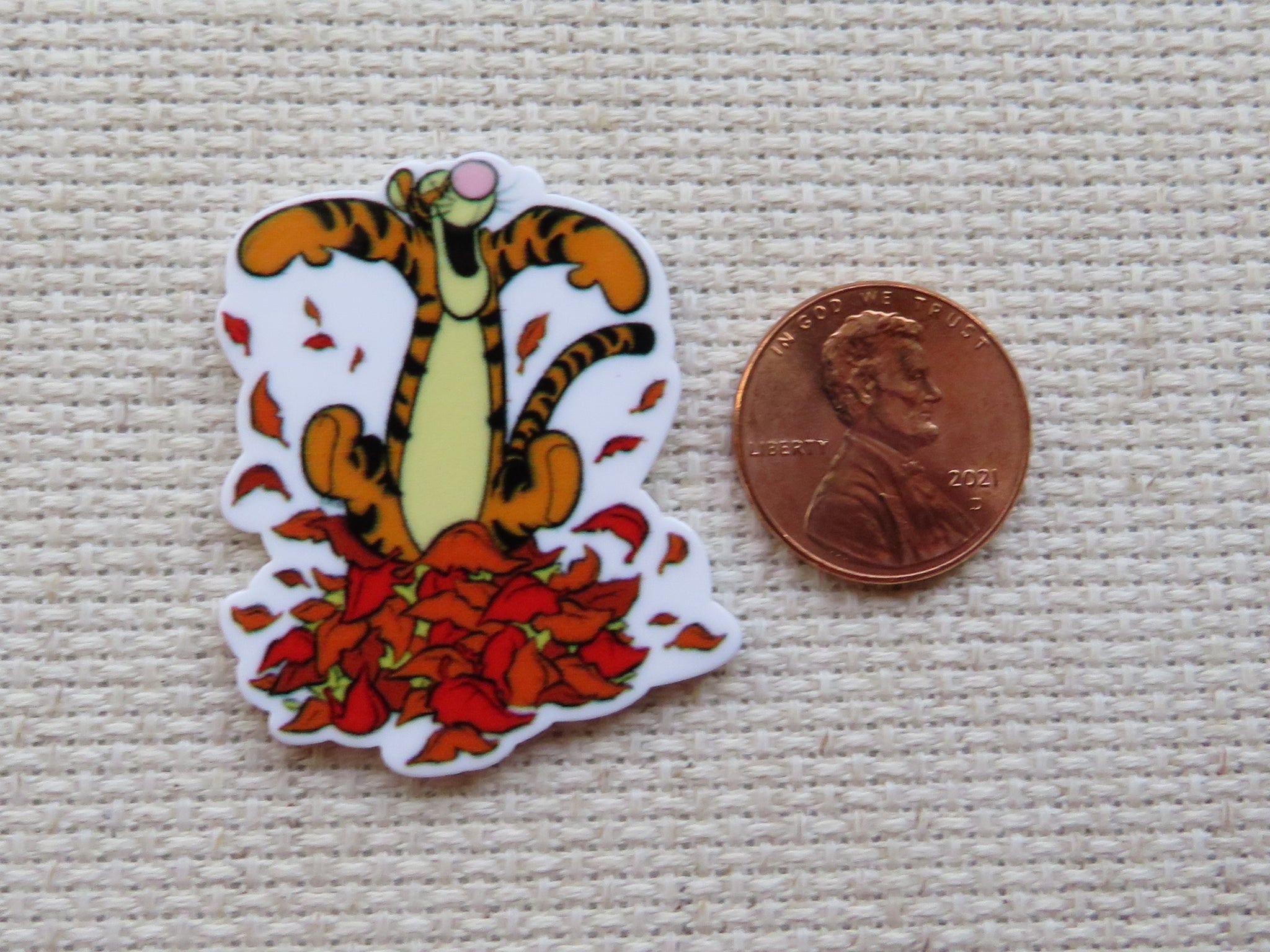 Cartoon Tiger Loves Fall Leaves Needle Minder, Cover Minder, Magnet