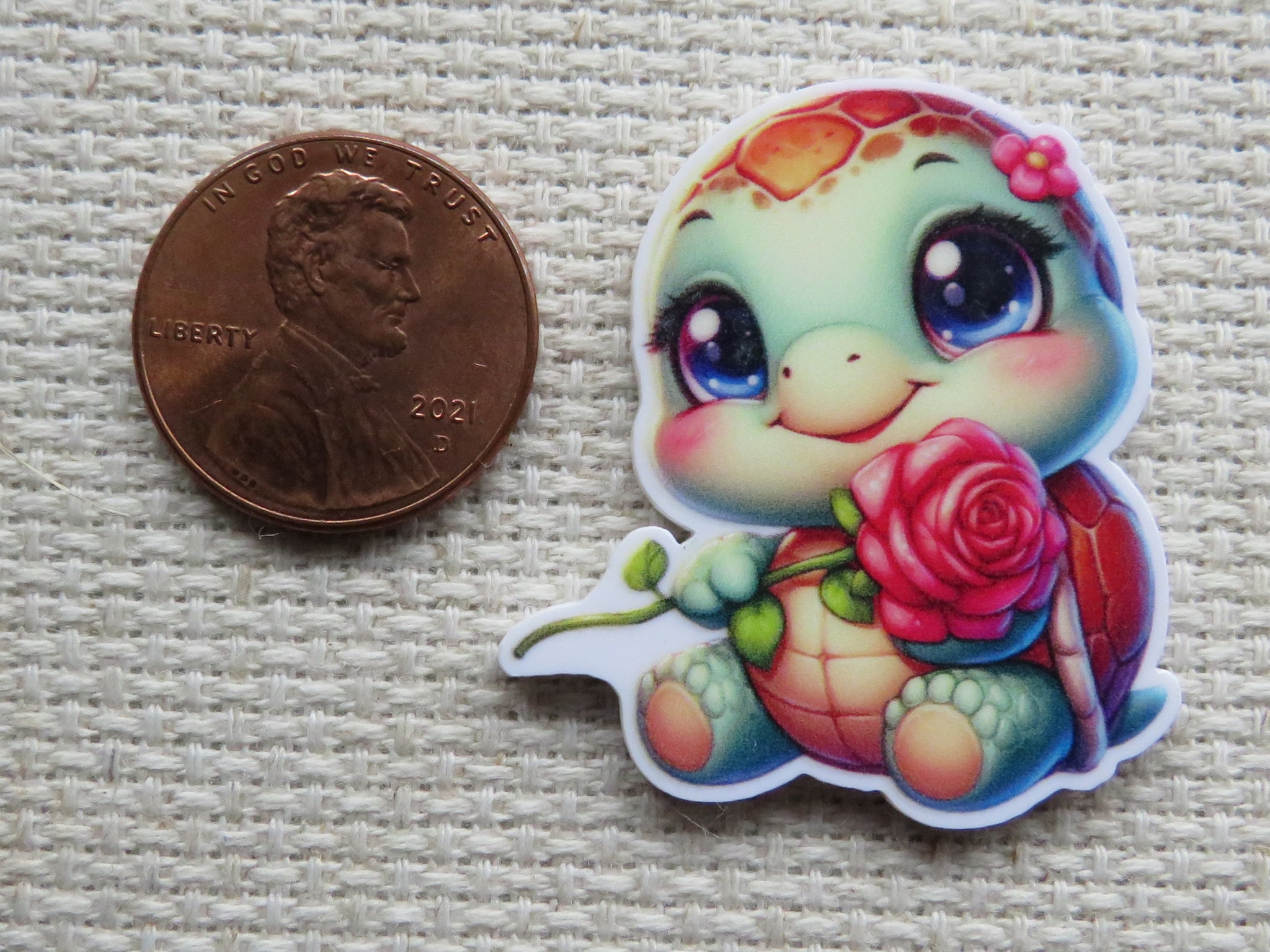 Cartoon Turtle with a Red Rose Needle Minder, Cover Minder, Magnet