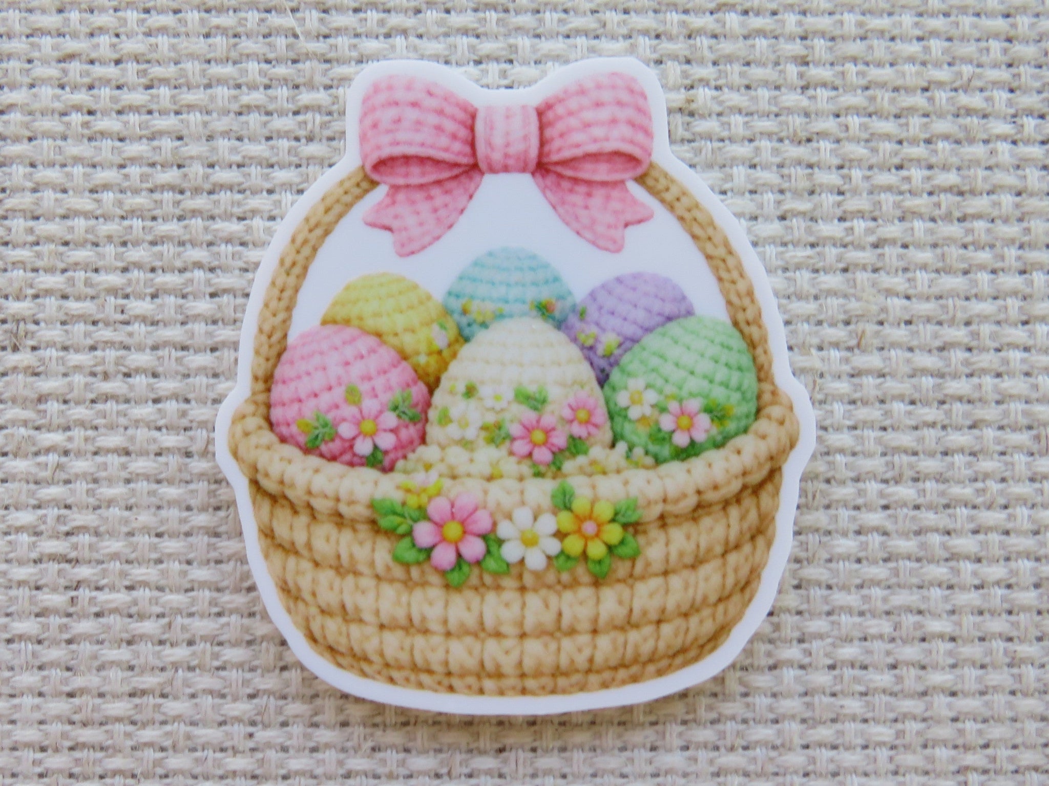 Crafty Eggs in a Basket Needle Minder, Cover Minder, Magnet