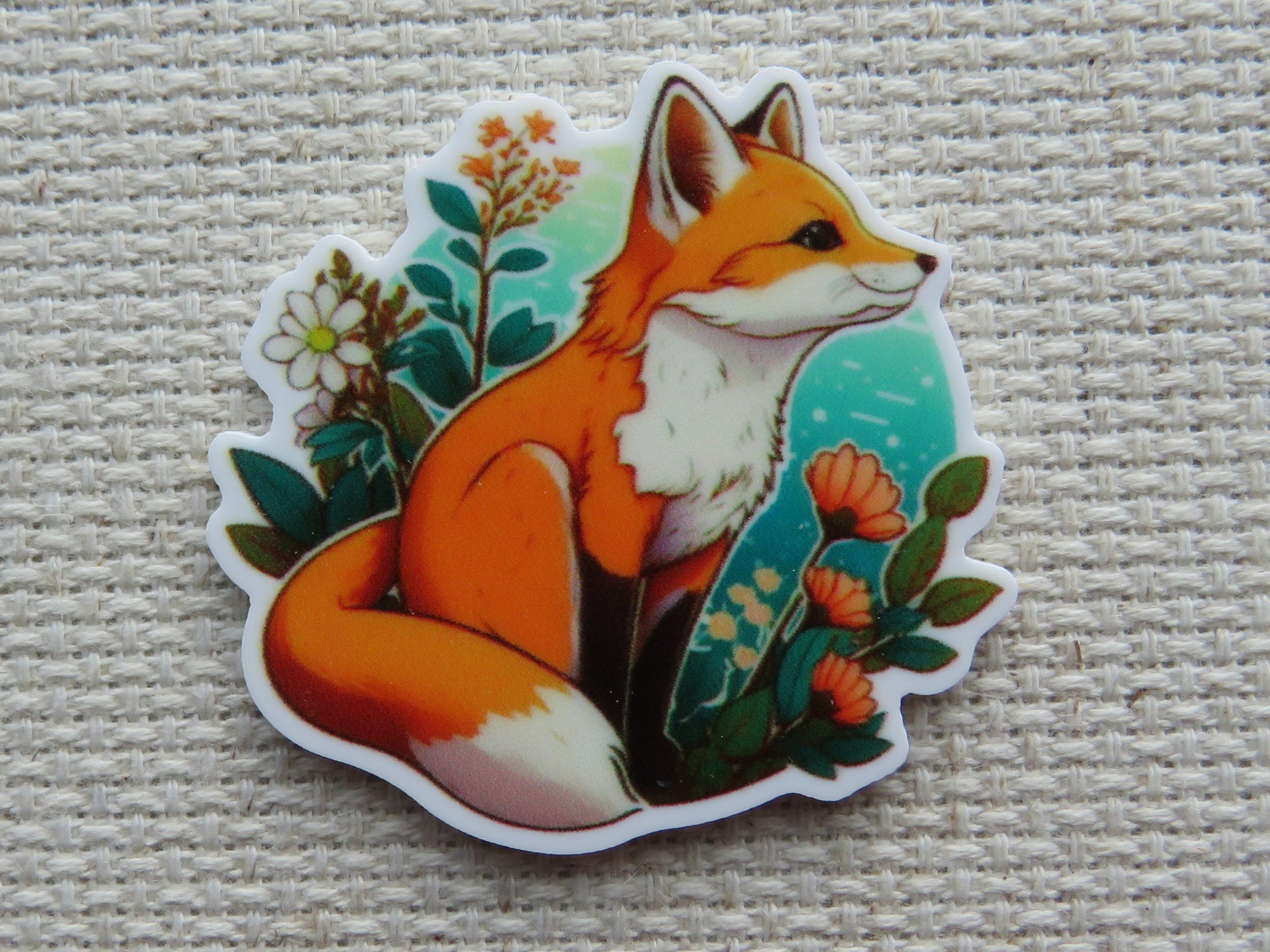 Fox Sitting Amongst the Flowers Needle Minder, Cover Minder, Magnet