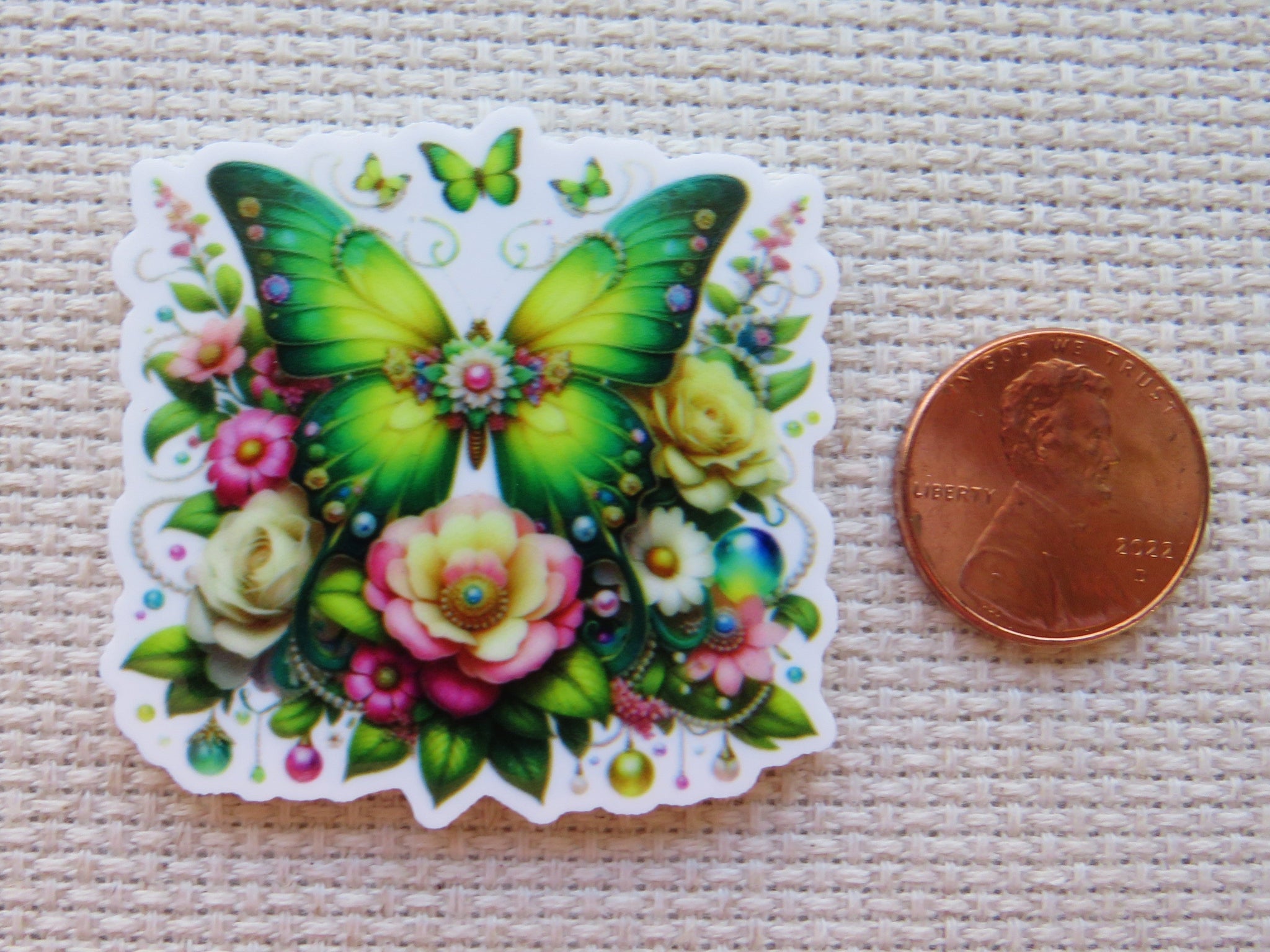 Green Floral Butterfly Needle Minder, Cover Minder, Magnet