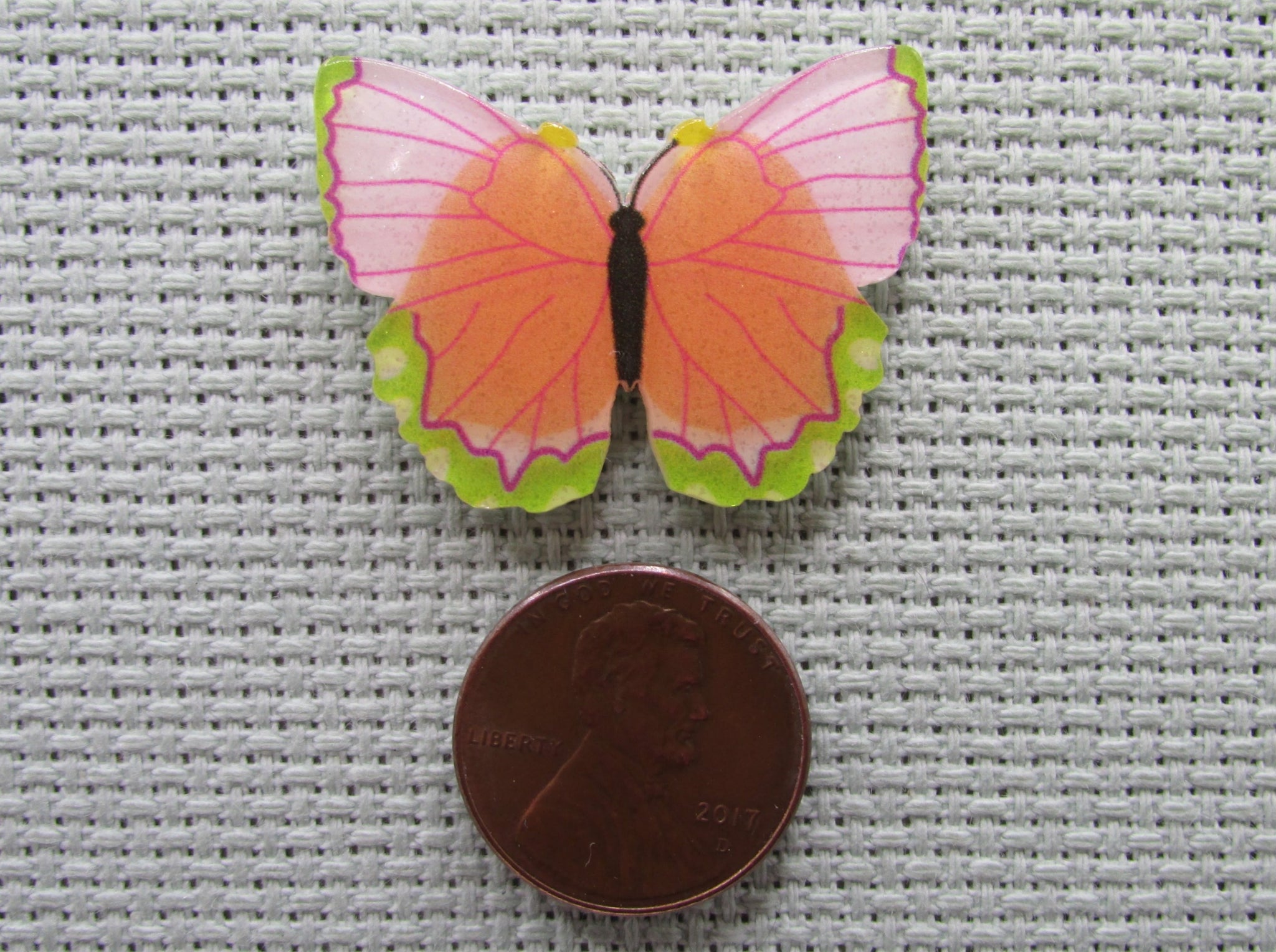 Pretty Orange Butterfly Needle Minder, Cover Minder, Magnet