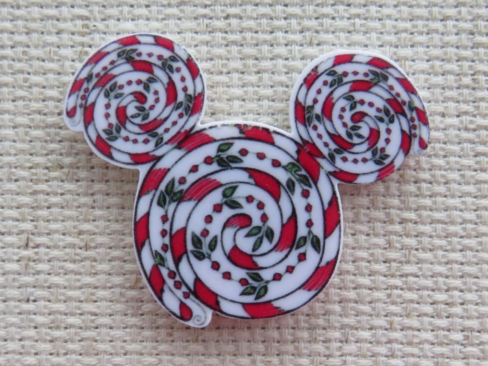 Red and White Candy Cane Swirl Mouse Ears Needle Minder, Cover Minder, Magnet