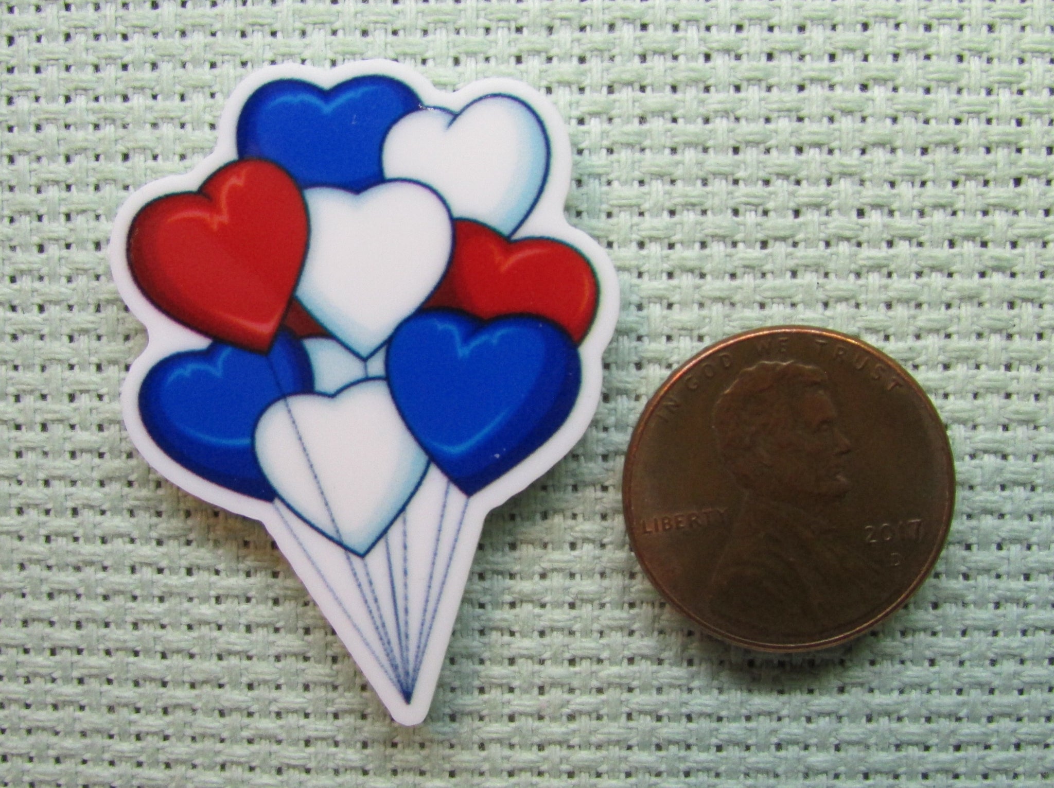 Red, White and Blue Heart Balloons Needle Minder, Cover Minder, Magnet