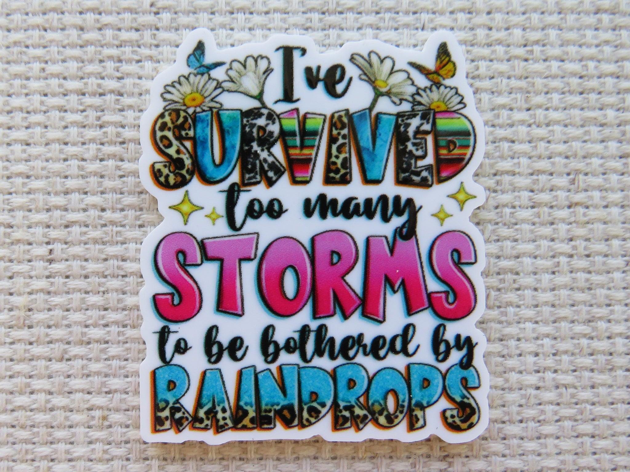 Colorful saying of "I've survived too many storms to be bothered by raindrops"