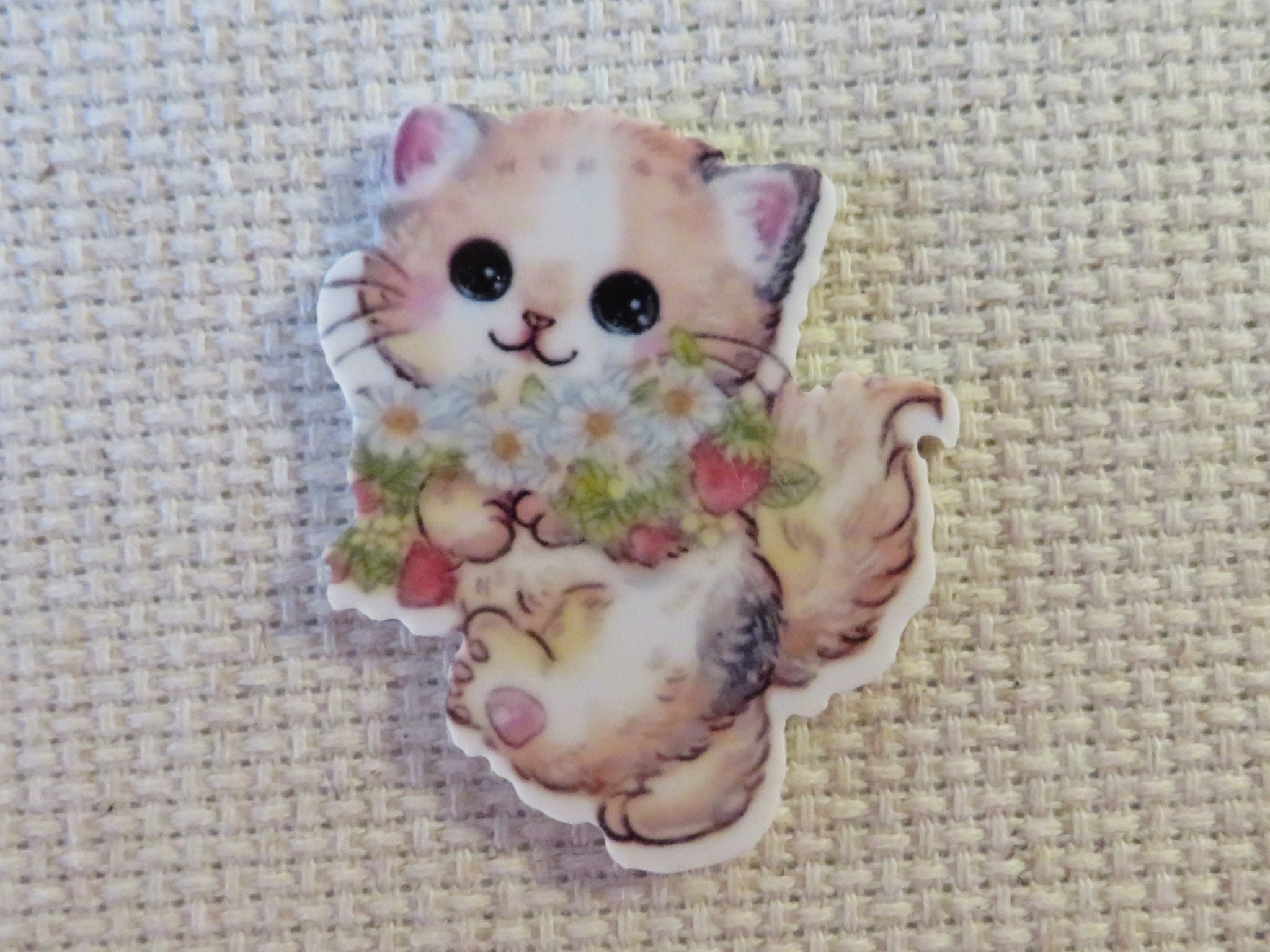 Tabby Cat Bringing Flowers Needle Minder, Cover Minder, Magnet