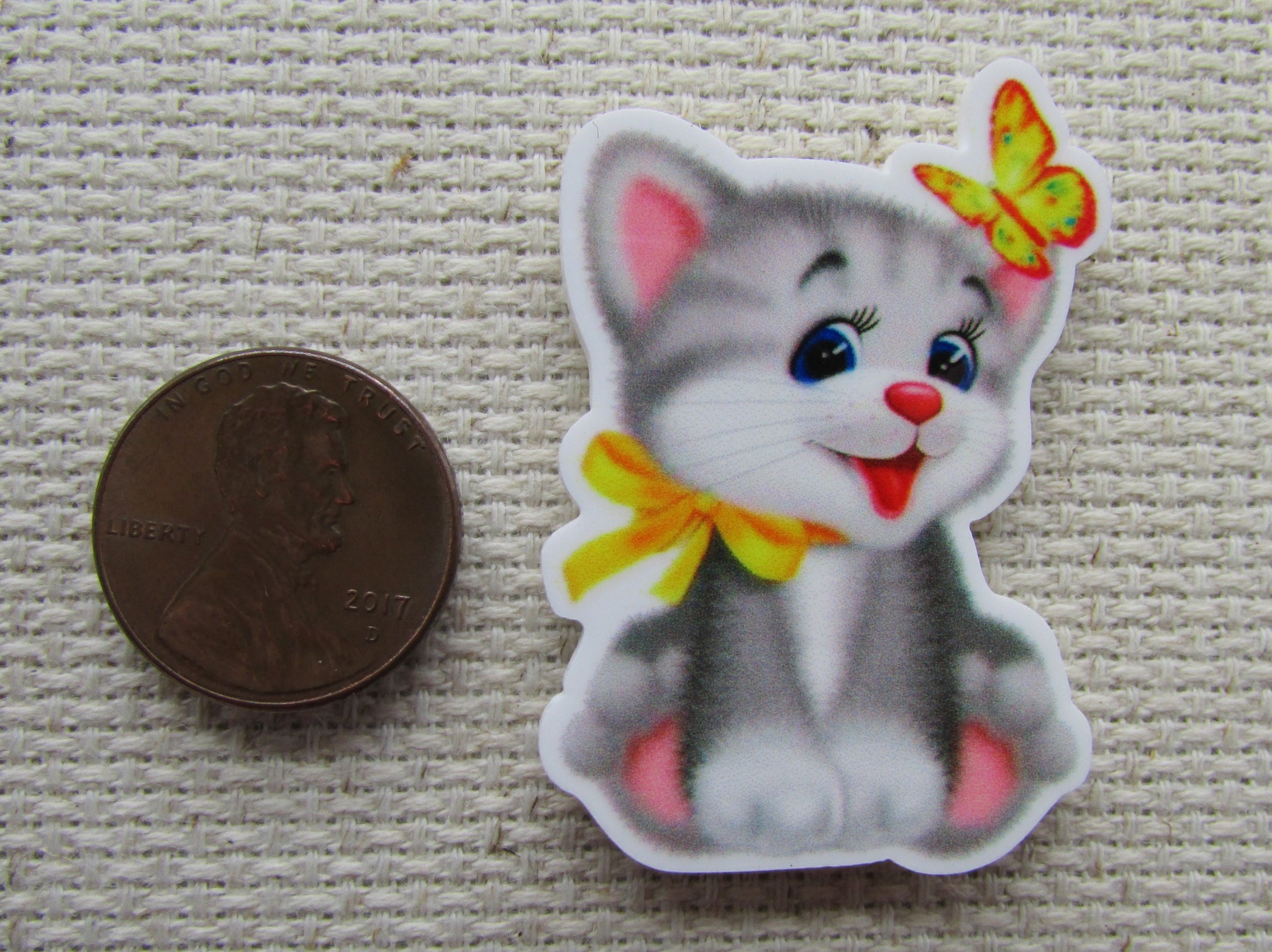 Tabby Cat with a Butterfly Friend Needle Minder, Cover Minder, Magnet