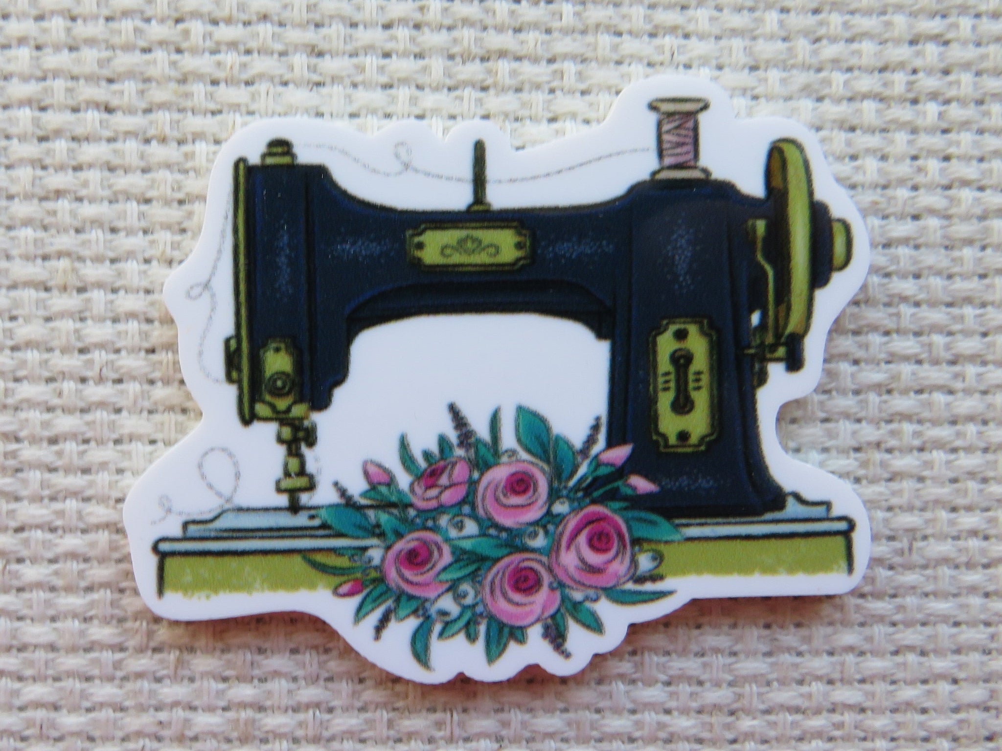 Vintage Black Sewing Machine with Pink Roses Needle Minder, Cover Minder, Magnet