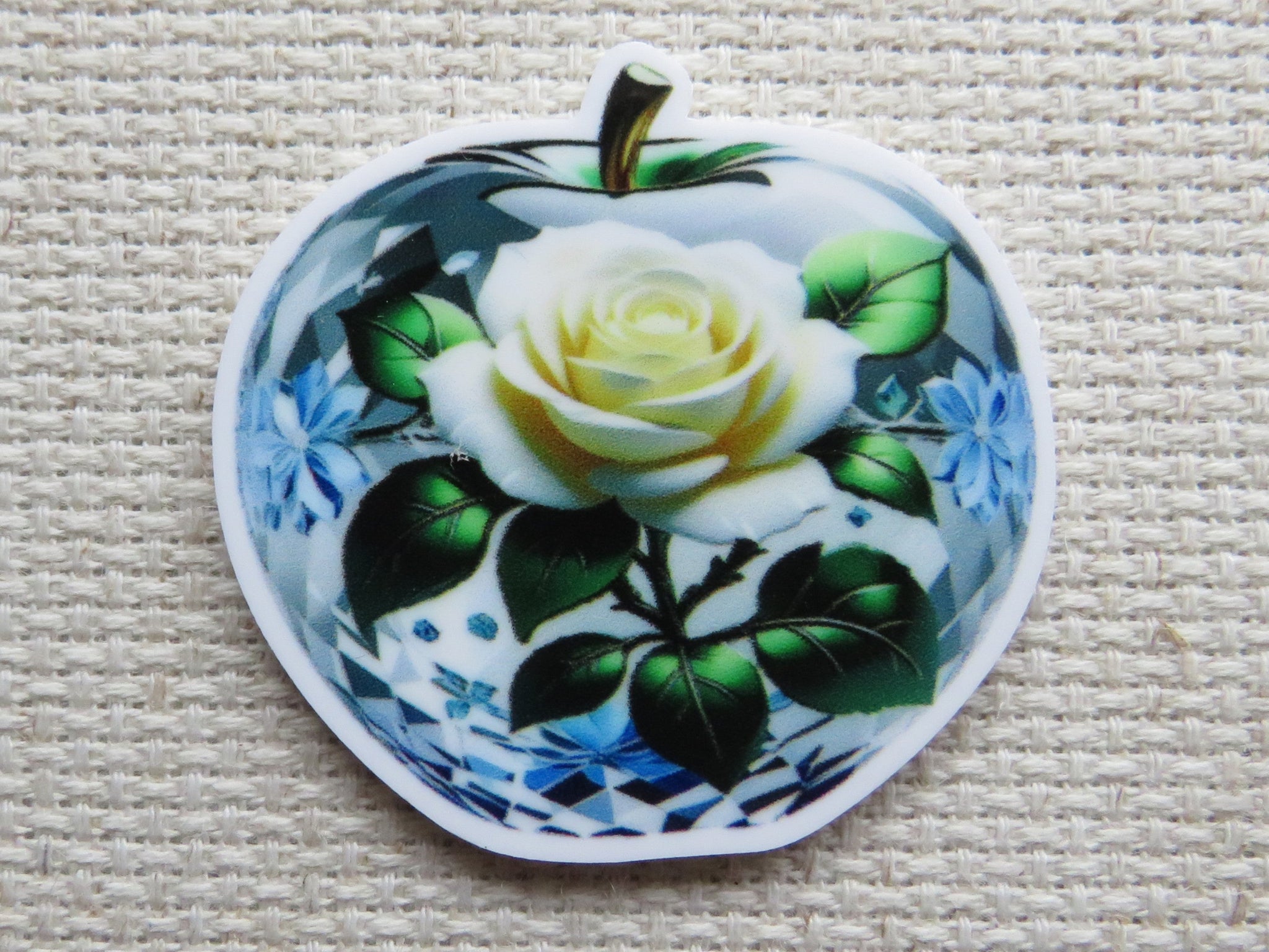 White Rose in an Apple Needle Minder, Cover Minder, Magnet