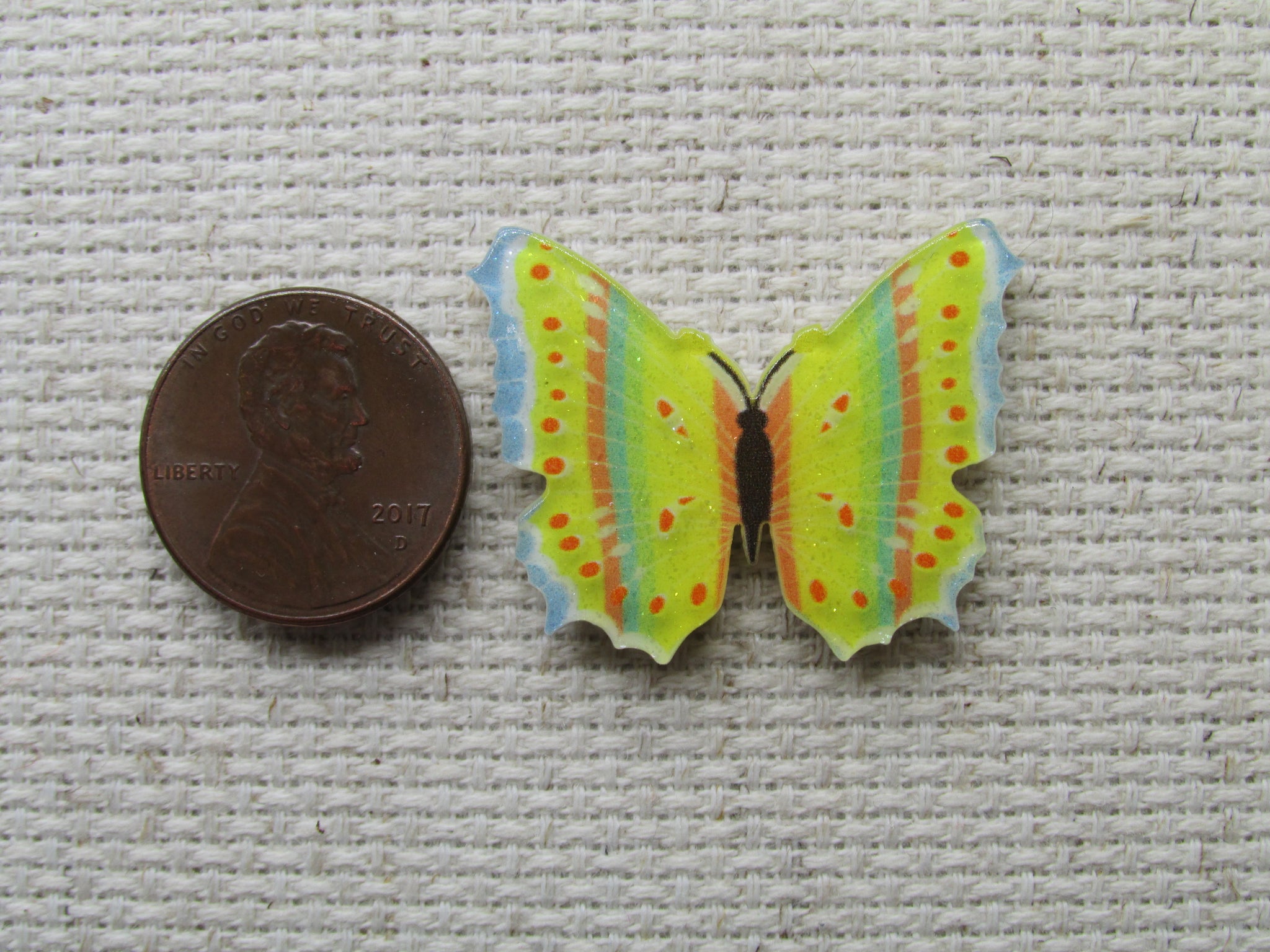 Yellow, Blue and Orange Butterfly Needle Minder, Cover Minder, Magnet